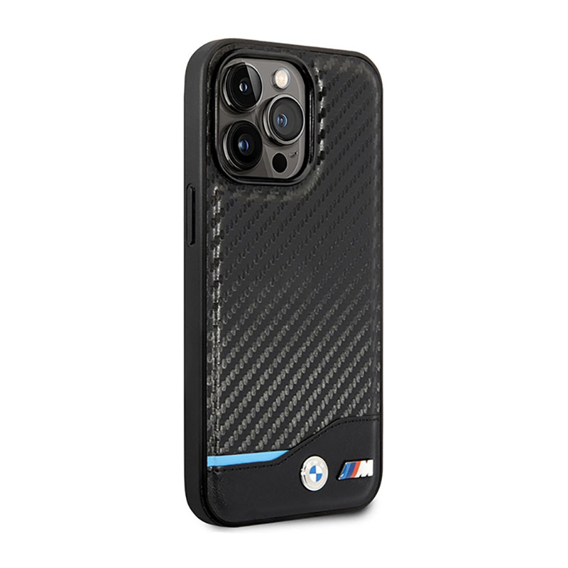 BMW Leather Carbon Blue Line MagSafe – Etui iPhone 14 Pro (czarny)