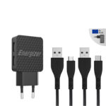 Energizer HardCase – Kompaktowa ładowarka sieciowa 2x USB-A + Kabel USB-C & Micro USB (Czarny) dożywotnia gwarancja